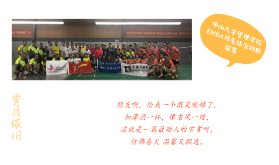 比賽中發(fā)揚了“友誼第一、比賽第二”的體育精神,各位參賽校友走出校門,在社會上摸爬滾打,至今已有十幾載,歲月在各自的臉龐心間也已印刻出了不同的滄桑質感,但只要走上賽場,沉睡于靈魂中的熱血激情就被喚醒,臉上輕松的笑容、場上矯健的身姿,像極了十幾年前穿著校服的一張張青澀、純真的少年,尤其是中山大學管理學院EMBA黃埔32期動動隊,一個班組成了一支實力不凡的10人隊伍,在比賽過程中團結合作、默契配合,是“奮斗、愛、分享”精神最生動的詮釋和體現(xiàn)。曾經(jīng)校友相聚于球場,便將半世滄桑拋腦后,一朝何妨作水仙。