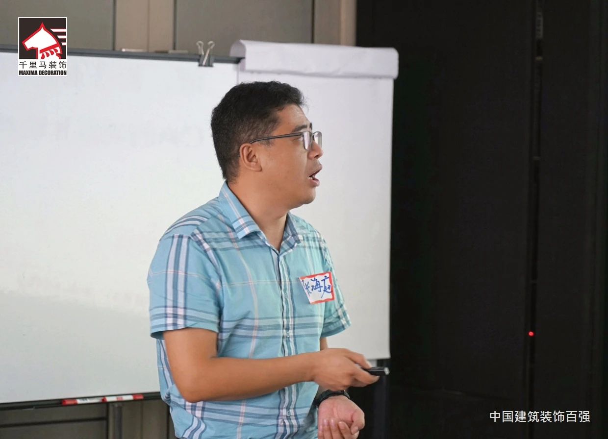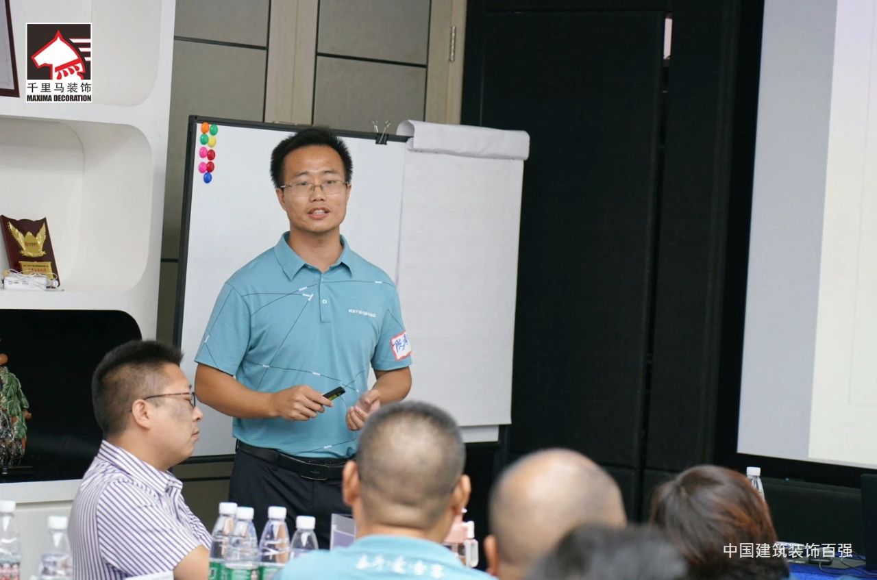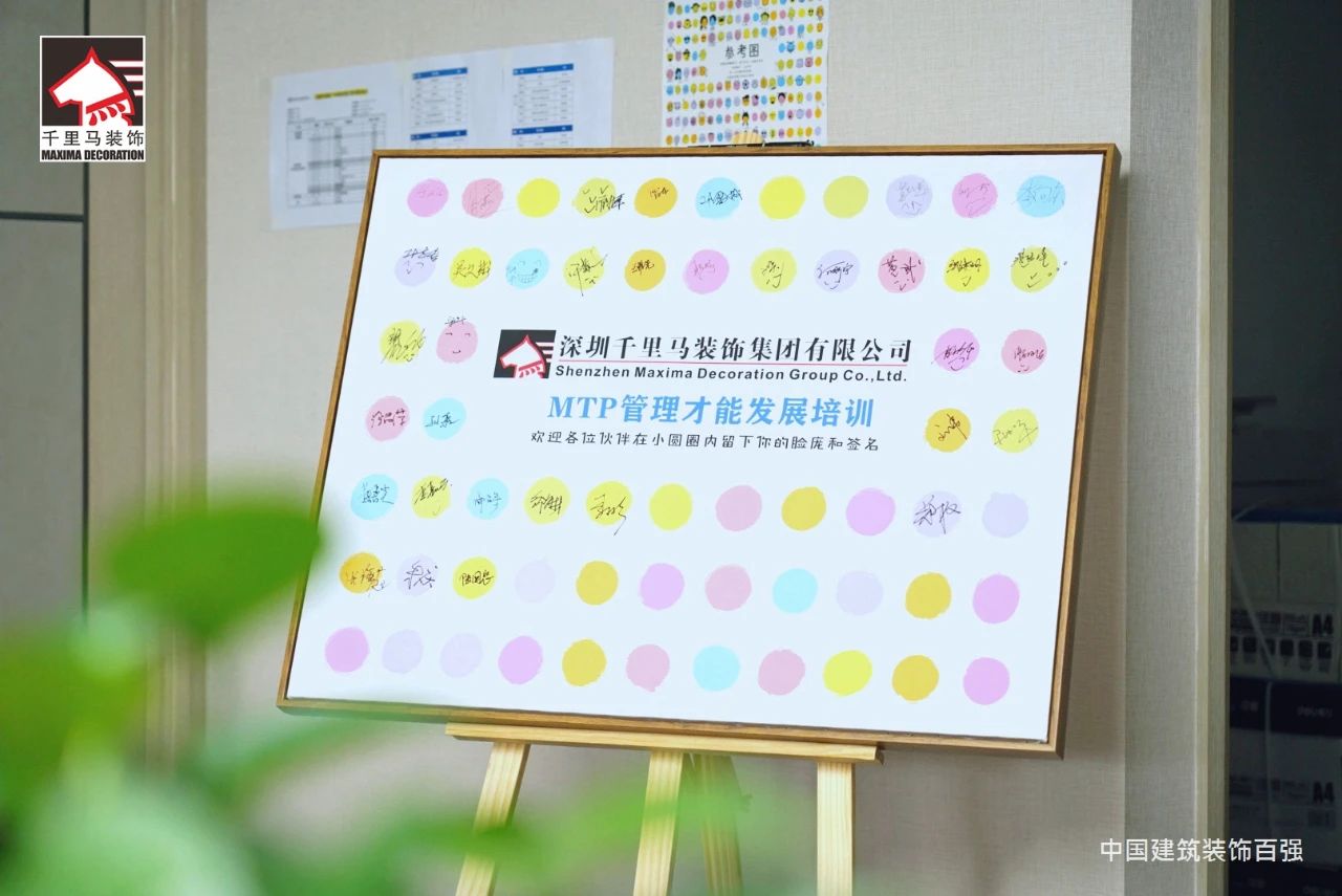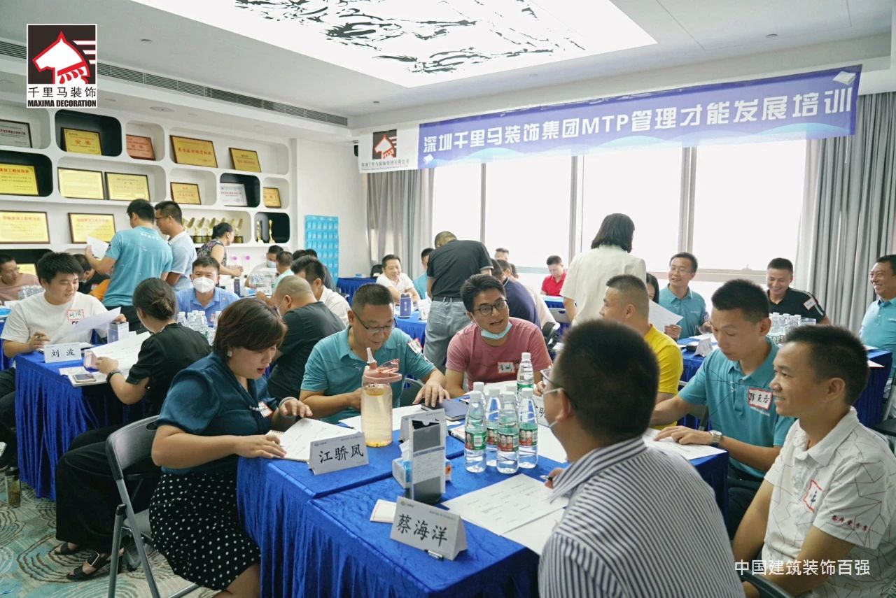 邁進(jìn)會議室,迎面而來的是擺放得整整齊齊的藍(lán)色課桌,抬頭看,清新怡人的藍(lán)白色相間的橫幅映入眼簾——“深圳千里馬裝飾集團(tuán)MTP管理才能發(fā)展培訓(xùn)”,原來是為了提升中層管理